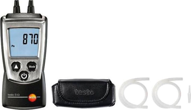 Манометр Testo 510 предназначен для измерения давления при ревизии, ремонтных работах, пусконаладке вентиляционных, климатических и нагревательных систем. Testo 510 оснащён функциями компенсации температуры и плотности воздуха. Прибор отличается высокой точностью: погрешность составляет всего ± 0.03 гПа.