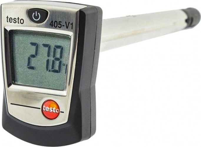 Основными достоинствами анемометра Testo 405, относящегося к приборам стик-класса, является высокая надежность, обеспечиваемая простотой конструкции и предельным минимализмом в управлении. Не смотря на низкую цену, анемометр Testo 405 является полнофункциональным измерителем, с помощью которого вы можете произвести быстрые замеры скорости воздушных потоков в воздуховодах, их температуры, и вычислить по результатам измерений объемный расход.