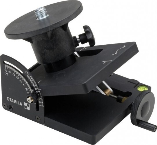 Клин для установки ротационных лазерных приборов под уклоном на строительном штативе. С помощью рукоятки лазерный прибор можно вручную установить под необходимым наклоном в диапазоне от 0 до 90°. Поворотная и съемная головка с соединительной резьбой 5/8" для надежного и удобного монтажа. Шкала в градусах и процентах. Для ротационных лазерных приборов с ручным режимом работы.