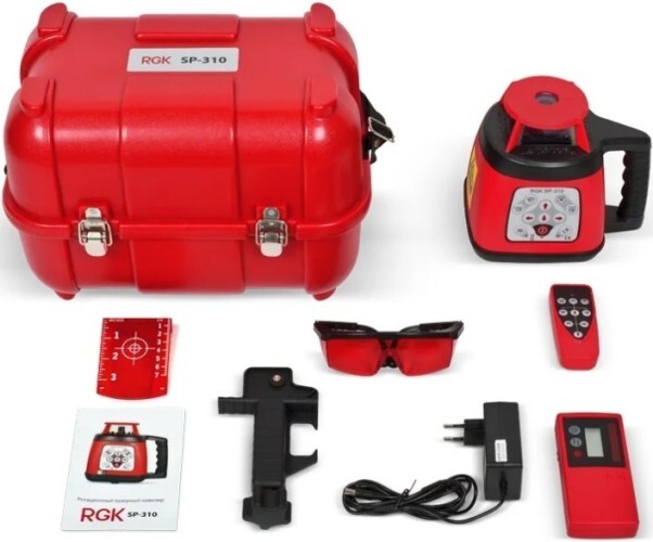 Лазерный уровень RGK SP310 поставляется с расширенным комплектом аксессуаров, повышающих функциональность инструмента. Благодаря приемнику лазерного излучения дальность работы нивелира может достигать 150 метров, что позволяет использовать прибор для работ на открытом воздухе. Пульт дистанционного управления позволяет осуществлять управление нивелиром на расстоянии. Специальный кронштейн позволяет установить приемник на рейку.