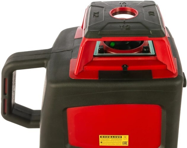 Корпус лазерного нивелира RGK SP-400G изготовлен в соответствии с классом пыле-влагозащиты IP54. Для вертикальной и горизонтальной установки на штатив предусмотрены два крепления 5/8"" внизу и на боку прибора.