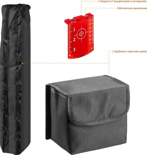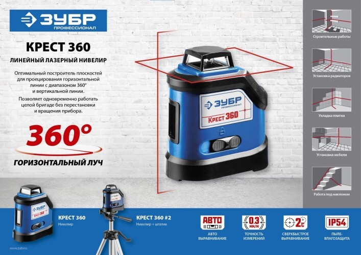 Лазерный уровень построитель плоскостей ЗУБР 34906-2, предназначен для генерирования горизонтальной, вертикальной и перпендикулярных линий при проведении разметочных работ. Световая индикация при превышении порогового значения угла самовыравнивания. Возможность блокировки компенсатора для защиты маятниковой системы от механических повреждений. Магнитный демпфер позволяет быстро гасить колебания.