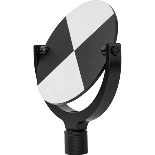 Увеличенный размер черно-белой мишени позволяет использовать геодезический отражатель при съемке с больших дистанций, размещая ее в зонах перекрытия сканов для минимизации количества съемочных позиций.