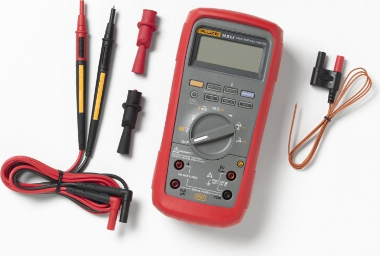 Мультиметр Fluke 28-II Ex — искробезопасный цифровой многофункциональный прибор, предназначенный для измерения параметров электрической цепи. Функционально этот аппарат является аналогом Fluke 28-II, но дополнительно оснащён защитой от возникновения искр в соответствии со стандартом ATEX. Это позволяет использовать мультиметр Fluke 28-II Ex в условиях повышенной пожароопасности при высокой концентрации горючих газов и паров, скопления огнеопасной пыли. Искробезопасный мультиметр востребован в химической, горнодобывающей и фармацевтической промышленности, на газо- и нефтеперерабатывающих заводах, автозаправках, угольных шахтах. Корпус Fluke 28II Ex полностью герметичен и надёжно предохраняет тонкую начинку от воды, пыли и механических повреждений, что значительно расширяет возможности его применения в сложных производственных и полевых условиях. Мультиметр Fluke 28-II Ex производит измерения напряжения и силы постоянного и переменного тока, сопротивления цепи, частоты. С помощью тестера можно проверить диод на пробой, а также цепь на короткое замыкание или разрыв. При измерении параметров нелинейного сигнала прибор Fluke 28-II Ex определяет их истинное среднеквадратическое значение с высокой точностью. Благодаря встроенному низкочастотному фильтру прибор можно использовать в условиях высокочастотных помех и электрического шума, возникающих при работе аппаратов с высоким энергопотреблением, частотно-управляемых приводов, инверторов и других аналогичных устройств. Важным достоинством конструкции мультиметра Fluke 28-II Ex является наличие специального отсека для плавких предохранителей, защищающих прибор от перегрузки. Эта особенность позволяет производить замену предохранителей в процессе работы, не нарушая калибровочные настройки измерителя. Купить мультиметр Fluke 28-II Ex стоит каждому, кто стремится обеспечить безопасность работы с сохранением точности измерений.