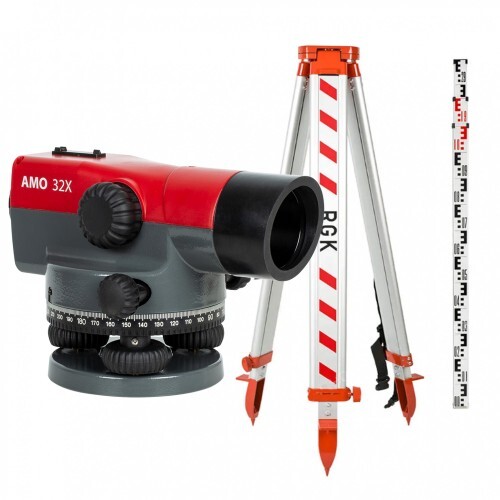 Комплект оптического нивелира AMO 32X - комплексное решение для строительства, геодезии и дорожных работ, проверенное профессионалами в полевых условиях. В набор входит прибор с увеличением 32 крат, трехметровая рейка, алюминиевый штатив с надежной винтовой фиксацией стоек и принадлежности для юстировки.