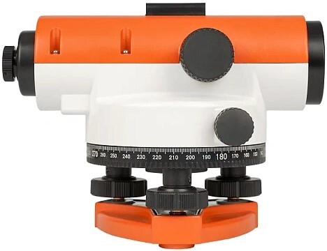 Устойчивый штатив с плоской площадкой позволяет установить нивелир на высоте до 170. В сложенном состоянии тренога не занимает много места и стягивается ремнем, что делает более удобной перевозку комплекта нивелира со штативом и рейкой в салоне автомобиля или общественного транспорта.