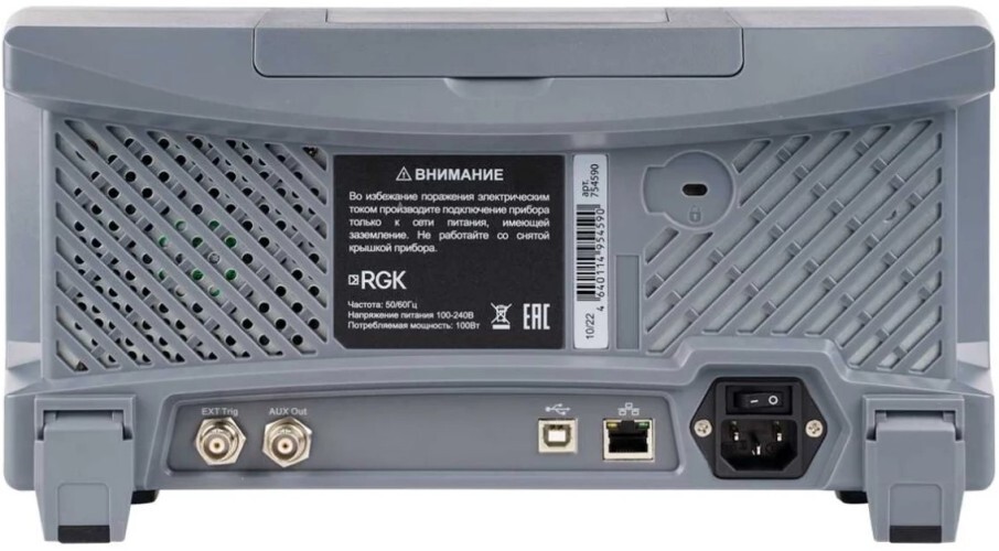 Возможность работы с сигналами разных типов обеспечивается за счет поддержки широкого перечня вариантов запуска. Доступна синхронизация по сигналу в любом из аналоговых каналов, от внешнего источника, подключаемого через ВЧ коннектор с обратной стороны прибора, либо от питающей сети переменного тока. Цифровой осциллограф может эксплуатироваться в режиме допускового контроля, с автоматическим сравнением отслеживаемых сигналов с нормативными значениями либо образцовой осциллограммой и выдачей результата в виде "годен" или "негоден" через соответствующий выход.