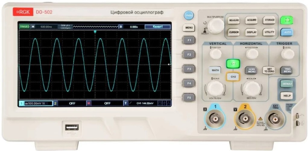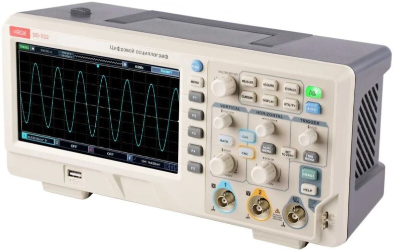 Цифровой осциллограф RGK DO-502 – двухканальная модель с полосой пропускания 50 МГц на основе 8-битного АЦП, оборудованная встроенным 6-битным частотомером и набором средств для анализа данных. Обладая наиболее доступной ценой в своей серии, прибор может использоваться для обучения, в радиолюбительской практике, а также при выполнении ремонтно-диагностических работ.