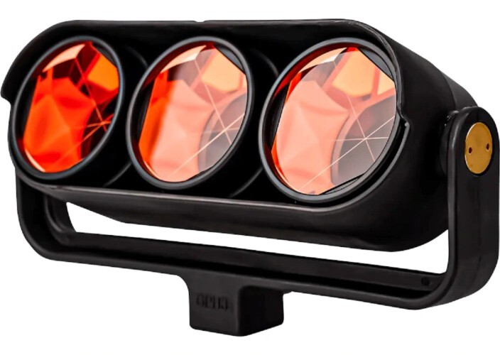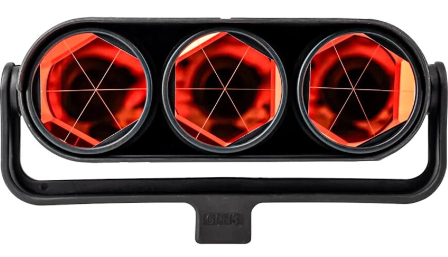 Трехпризменный отражатель с креплением типа фитинг, позволяющий осуществлять точные дистанционные измерения с помощью тахеометра.