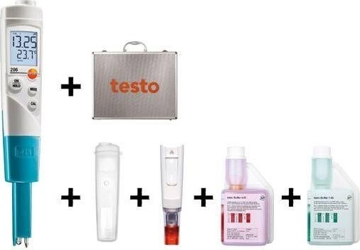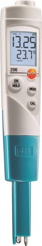 Карманный pH-метр для измерения pH/°C с наконечником зонда pH1 для жидкостей, Идеален для измерения pH в жидкостях. Сочетание погружного pH-наконечника и зонда температуры обеспечивает точное измерение pH, а также быструю и эффективную температурную компенсацию. Благодаря гелевому электролиту и полой диафрагме между измерительным электродом и корпусом, pH-зонды testo защищены от утечек, не требуют обслуживания и не подвержены загрязнению. testo 206-pH1 предназначен специально для быстрого измерения pH в жидкостях.