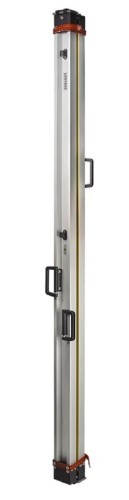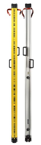 Входящие в комплект две неразъемные инварные рейки из алюминиевого профиля стандартно оснащены двумя круглыми уровнями, которые закреплены на разной высоте, и складывающимися ручками. Инварная вставка удерживается продольными элементами в соответствующем пазе лицевой части корпуса и пружиной, компенсирующей растяжение профиля. Пятки реек с износостойкой опорной пластиной, изготовленной из никелированной стали, снабжены специальными выступами, исключающими контакт лицевой части двух изделий при их укладке в транспортировочный бокс. Для их крепления между собой предусмотрены кожаные ременные стяжки, закрепленные в верхней части обоих инструментов.