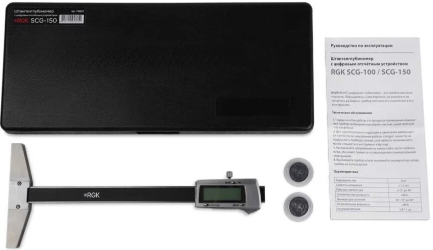 Электронный штангенглубиномер RGK SCG-150 представляет собой измерительный инструмент, который может применяться на механическом производстве и в ходе проведения ремонтных работ. Он позволяет выполнять измерение глубины в пределах до 150 мм с разрешением 0,01 мм, с отображением результатов в метрической или дюймовой системе мер, а наличие функции обнуления дает возможность определять разность глубин, произвольно задавая нулевое значение.