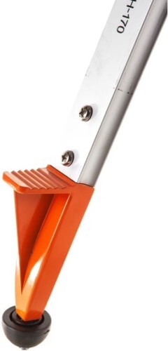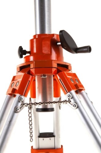 Телескопические стойки оборудованы фиксаторами-клипсами, благодаря чему подготовка геодезического штатива к работе занимает считанные секунды. Специальные цепи ограничивают ход ножек в безопасных пределах, а противоскользящие накладки и прочные упоры помогают надежно установить треногу на паркете, земле или асфальте.