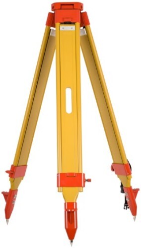 Телескопические ножки фиксируются в необходимом положении надежным винтовым механизмом. Заостренные наконечники стоек и прочные упоры помогают крепко установить геодезический штатив в рыхлый грунт.