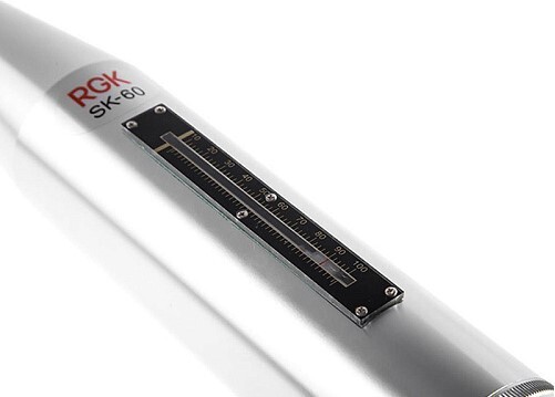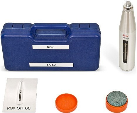 Склерометр RGK SK-60 предназначен для определения прочности на сжатие строительных материалов (бетона, камня и т.д.) в диапазоне 10-60 Мпа по ГОСТ 22690. Принцип работы RGK SK 60 основан на измерении высоты отскока бойка в у.е. шкалы прибора о контролируемую поверхность объекта, что является косвенной характеристикой прочности на сжатие. Измеритель прочности бетона RGK SK 60 – это традиционный неразрушающий тестовый инструмент, который используется для определения сопротивления сжатию или твёрдости застывшего бетона и камня. Склерометр обеспечивает быструю и простую проверку для получения результата на месте.