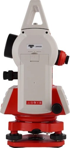30-кратная зрительная система прямого изображения с 45-миллиметровой входной линзой обладает высокой светосилой, что позволяет уверенно использовать теодолит на средних дистанциях, обеспечивая точное наведение на выбранные точки. Для предварительного ориентирования в прямом и обратном положении оптическая система снабжена двумя визирами коллиматорного типа. Панели управления оборудованы клавишным интерфейсом с 6 кнопками оригинальной формы, которыми можно пользоваться, не снимая перчаток в холодное время. Ручка в верхней части прибора, которая при необходимости может быстро сниматься, позволяет удобно переносить изделие в пределах рабочей площадки и легко устанавливать его на штатив. Контрастная расцветка делает теодолит хорошо заметным как при использовании в ходе строительства, так и при выполнении изысканий и других работ в полевых условиях.