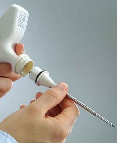 Прочный термометр для проведения измерении в пищевом секторе со сменной измерительной насадкой для проведения контрольных измерений на мясокомбинатах, холодильных комнатах, рефрижераторах и др.