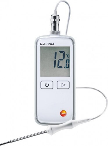 Портативный цифровой термометр testo 108-2 предназначен для измерения температуры хранения продуктов, готовых блюд и других применений в областях пищевой промышленности и сферы общественного питания, в службах санитарного и экологического контроля. Простой в использовании прибор (всего 2 кнопки) выполнен в водонепроницаемом по стандарту IP67 корпусе и обладает современным дизайном.